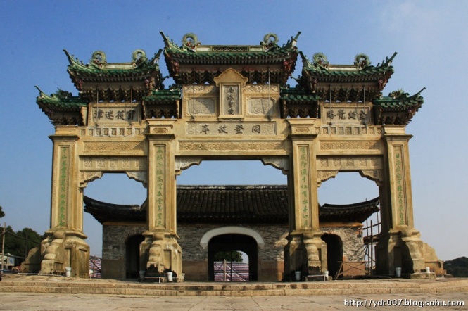 浙江普陀山牌坊“同登彼岸”。